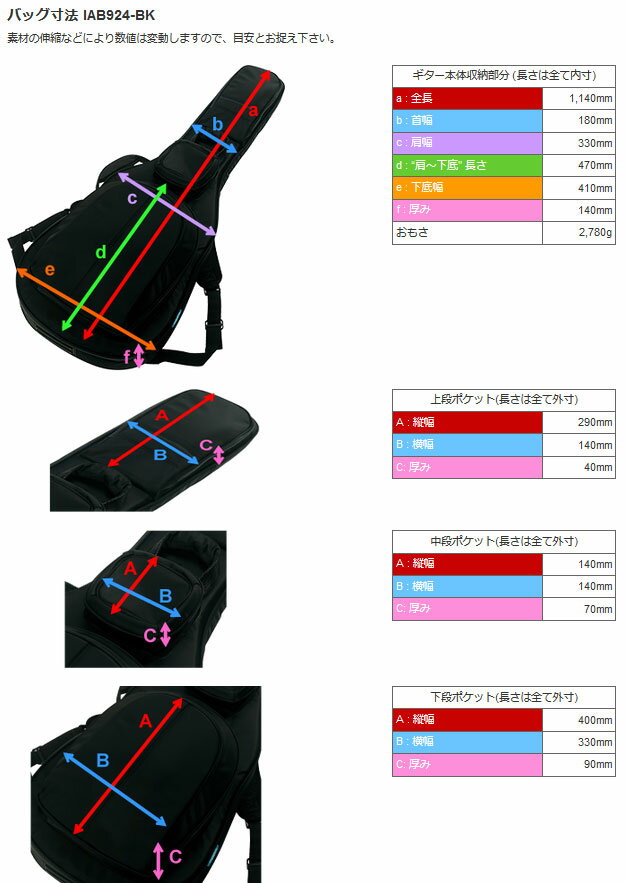 Ibanez [アイバニーズ] アコースティックギター用バッグ IAB924-BK アコースティック・ギター/エレアコ・ギター用 ケース