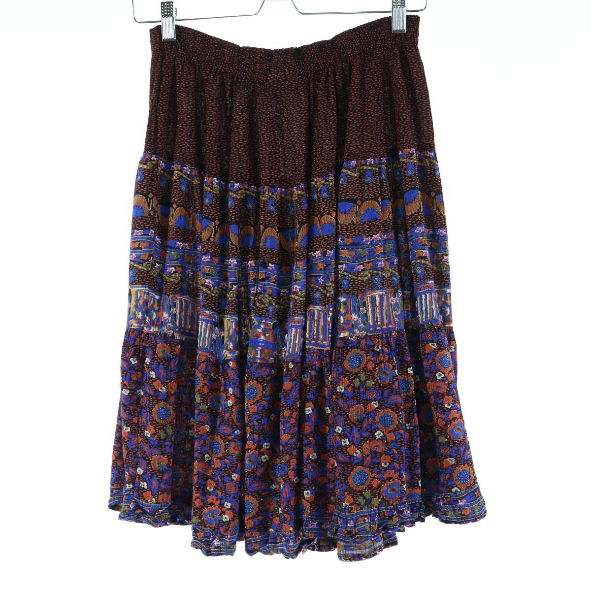 FIRST OPTION 総柄 裾フリル レーヨン ハーフ丈 ギャザースカート USA製 レディースM /wbk8926 【中古】 【200330】