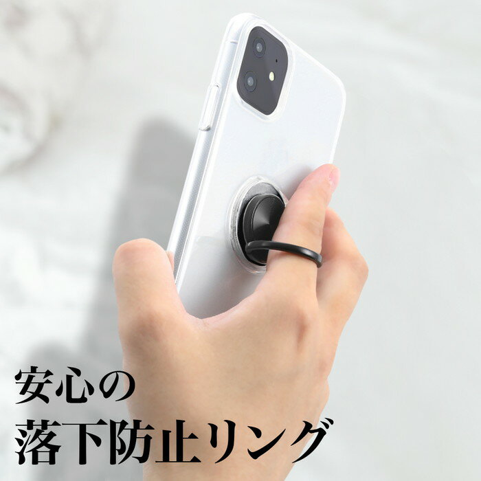 スタンドとしても使用可能な360°回転リングで不意な落下を防止。